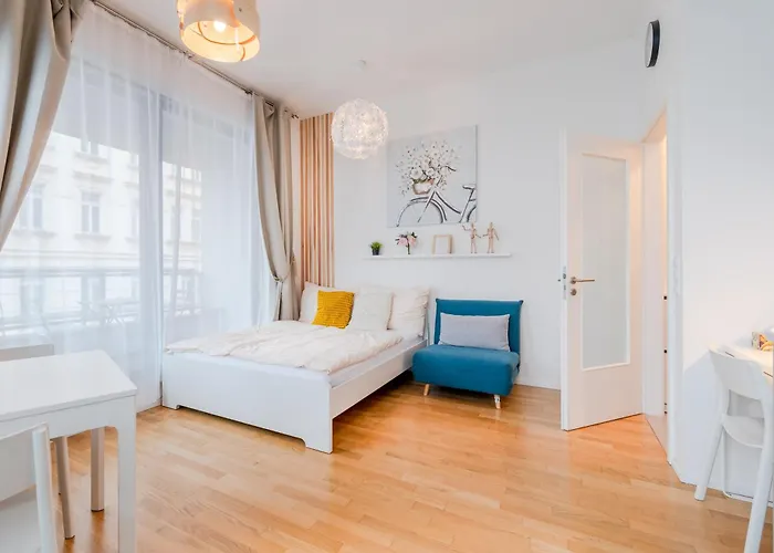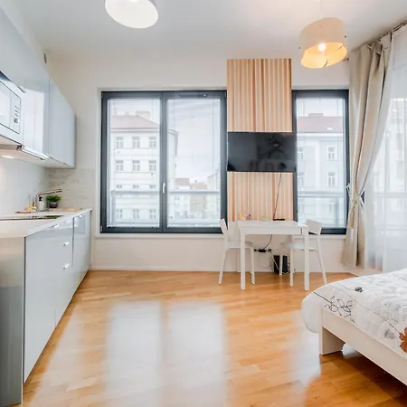 New-Built Golden Luxury Studio With Balcony offers convenient self-catering facilities, including a full kitchen with an electric kettle, a refrigerator, and a stove top. The nearest bus station Jiriho z Podebrad is only 0.8 km away.